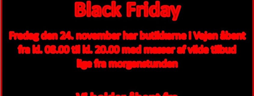 For at gøre BLACK FRIDAY d. 24. november ekstra spændende åbner vi allerede kl. 8.00 og holder åbent til kl. 2o.00